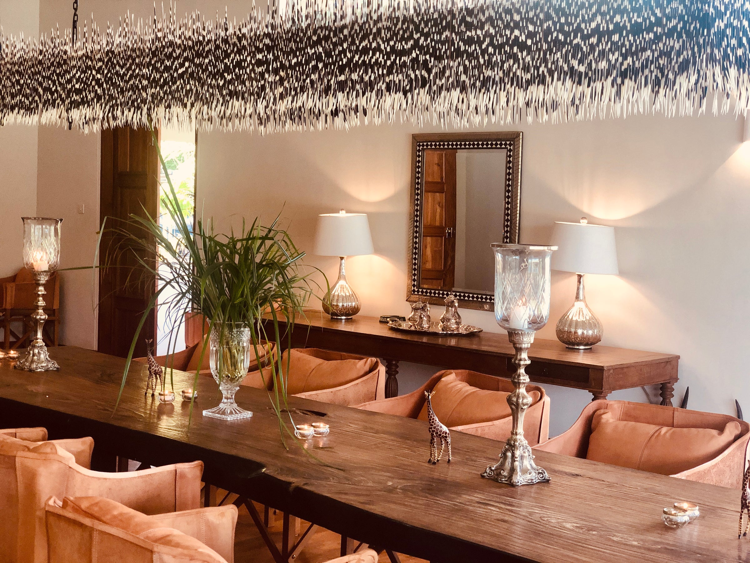 Our Incredible rectangular porcupine quill chandelier.